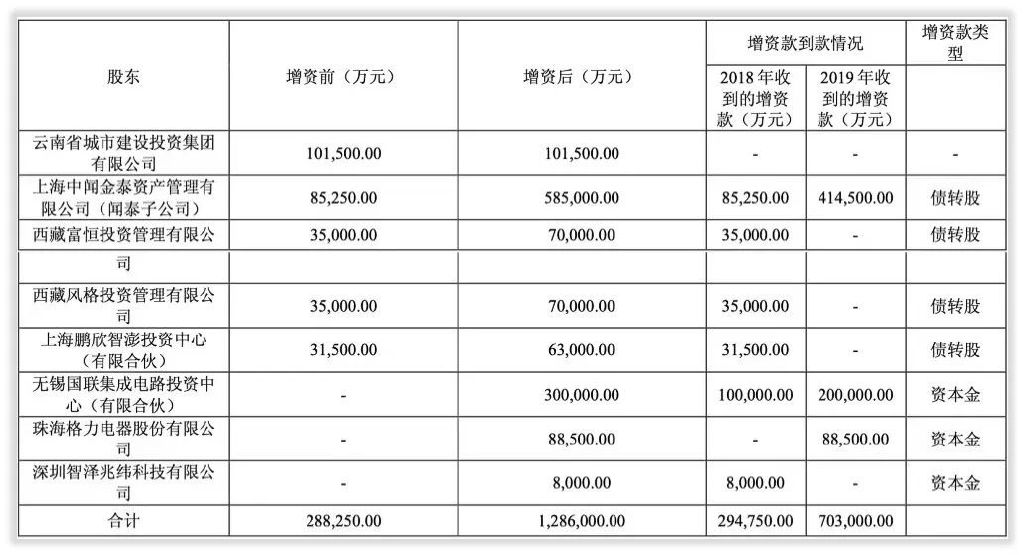 同月,子公司上海中聞金泰資產(chǎn)管理有限公司投資設(shè)立合肥中聞金泰半導(dǎo)體投資有限公司;后對合肥中聞金泰增資5億元,完成后合肥中聞金泰注冊資本5.05億元。